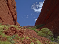 Near Uluru, Kata Tjuta ("The Olgas") is another famous sight in central Australia. It is a collection of rounded hills (Kata Tjuta means "many heads") and is believed to have been eroded from a rock like Uluru, but much bigger. It's about 40km from Uluru and the paved road from Alice Springs ends here - after Kata Tjuta, you need a special permit to continue westwards. And a special vehicle. From here, the road leads to Warrakurna and Warburton, to the Gunbarrel Highway - you're entering Diesel And Dust country
