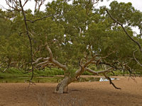 From Alice Springs, the Larapinta and Namatjira drives (roads) go westwards along the southern edge of the ranges. Larapinta drive leads to a supposedly nice oasis, but we were told that due to the rainfalls, the status of the road was unclear and it could be closed at any time. Namatjira drive leads to a couple of gorges and lakes and then to a waystation in the desert, Glen Helen