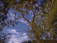 Lamington National Park on the New South Wales/Queensland border is the largest subtropical rainforest in Australia. It is in mountainous terrain, and as the name rainforest indicates, it is humid. Besides the usual national park accomodations, there is also a resort, and there are hiking trails, a canopy walk etc..