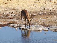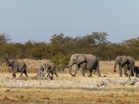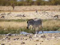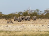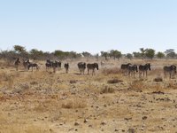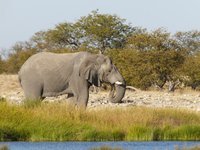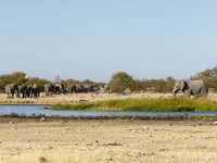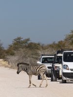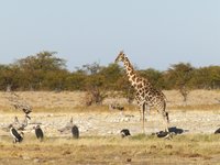 Camp Halali is a large fenced-in compound in the national park with a camp site, many bungalows, a restaurant, shops and a gas station. We spent two nights in rather new and comfortable buildings. They also had an illuminated water hole, but it was pretty new and not yet used by many animals. It was also a couple of minutes to walk from the camp itself. The camp operators also offer early-morning game drives into the park. But it's pretty cold.