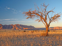 Near the entrance to Sossusvlei is Desert Camp, a group of semicanvas buildings designed for self-caterers. Each building was erected as a kind of tent on a concrete foundation and was equipped with a little kitchen outside and a barbecue place. There was a central building with a pool (ice cold) but no restaurant or similar.