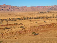 The Namib Desert Lodge lies near an area of petrified dunes a bit north of Sossusvlei. It is a large and comfortable place; we used it as a waystation to the Namib and the Sossusvlei. The lodge offered a "sundowner" tour int the petrified dunes which basically means to drink a lot of Gin Tonic at sunset.