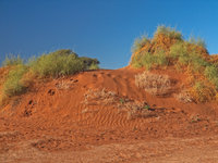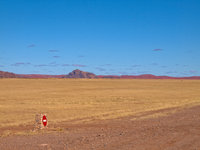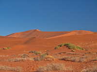 Sossusvlei is a valley in the Namib desert which contains the famous Dune 45 as well as the Deadvlei at it's end, a pan with dead vegetation. Sossusvlei is full of apricot coloured sand dunes and is the source of many pictures of Namibia (including the one in the standard Windows background collection). Since I prefer my scenery with living things in it, it is not my favourite place