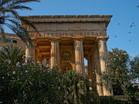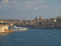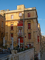 Valletta, the capital of Malta, is an impressive heavily fortified Renaissance-era city. To the land, it is protected by giant bastions and deep moats (although currently dry), there are no beaches or other easy approaches by sea, and bastions and fortresses cover seaside access as well. The city consists mostly of narrow streets and multi-storey houses, with some steep descents and ascents. The predominant colour is yellow – most of the island has a layer of pale yellow limestone which is pliable and provides the best local building material.