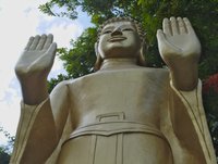 The Phra Bang is a much-venerated wooden Buddha image, and the original royal capital of Laos is named after it: Luang Prabang is the "town of the Phra Bang". Luang Prabang is situated on a peninsula between the Mekong and Nam Khan rivers, in mountainous terrain, easy to defend but not easy to reach except for the Lord over One Million Elephants (the old name of Laos).