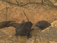 There are two seal colonies on Kangaroo Island, one of them at Cape de Couedic at the Southwestern corner of the island. New Zealand fur seals live in this colony. Fur seals are eared seals, as opposed to true seals which do not have ears. Eared seals have two hind flippers, which they can use for clumsy locomotion on land, whereas true seals have a single flipper and only use the fore flippers to move on land.