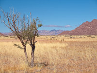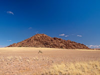 Near the entrance to Sossusvlei is Desert Camp, a group of semicanvas buildings designed for self-caterers. Each building was erected as a kind of tent on a concrete foundation and was equipped with a little kitchen outside and a barbecue place. There was a central building with a pool (ice cold) but no restaurant or similar.
