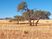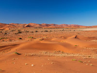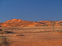 Sossusvlei is a valley in the Namib desert which contains the famous Dune 45 as well as the Deadvlei at it's end, a pan with dead vegetation. Sossusvlei is full of apricot coloured sand dunes and is the source of many pictures of Namibia (including the one in the standard Windows background collection). Since I prefer my scenery with living things in it, it is not my favourite place